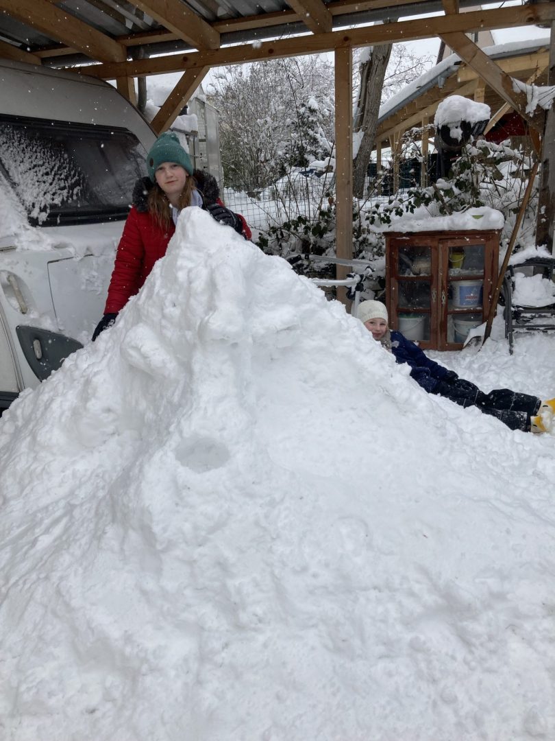 Als der Schneefall am 26. Januar die Schulen schloss, ließ es sich die Klasse 5a nicht nehmen, trotzdem aktiv zu werden – nur eben von zu Hause aus. Ihre Mathematik-Hausaufgabe war nämlich nicht nur theoretisch, sondern handwerklich: Jede Schülerin und jeder Schüler sollte eine Schneefigur namens Anton oder Antonia bauen und als Foto dokumentieren.