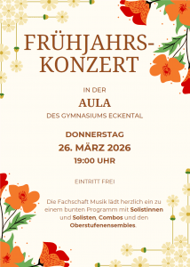 Die Fachschaft Musik lädt herzlich zum Frühlingskonzert am Donnerstag, den 26.3. um 19 Uhr in der Aula ein!
