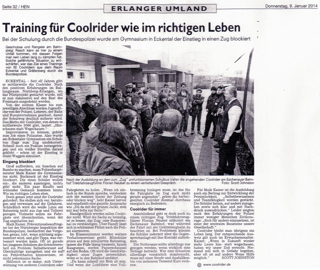 Resonanz zur Arbeit der Coolrider in der Presse: